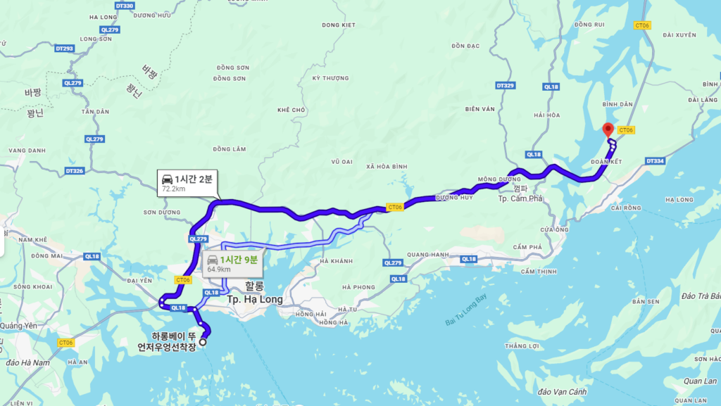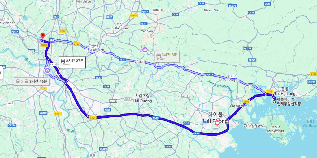 많은 분이 “하롱베이는 무조건 하노이로 가야 하는 거 아니야?”라고 생각하시지만, 실제 지도를 펴놓고 이동 시간을 재보면 답은 명확합니다.